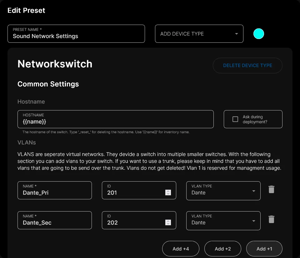 For us, a network switch is a network switch. No matter if Cisco, Netgear or Luminex. All settings you make in the presets are applicable for all devices of this device type.